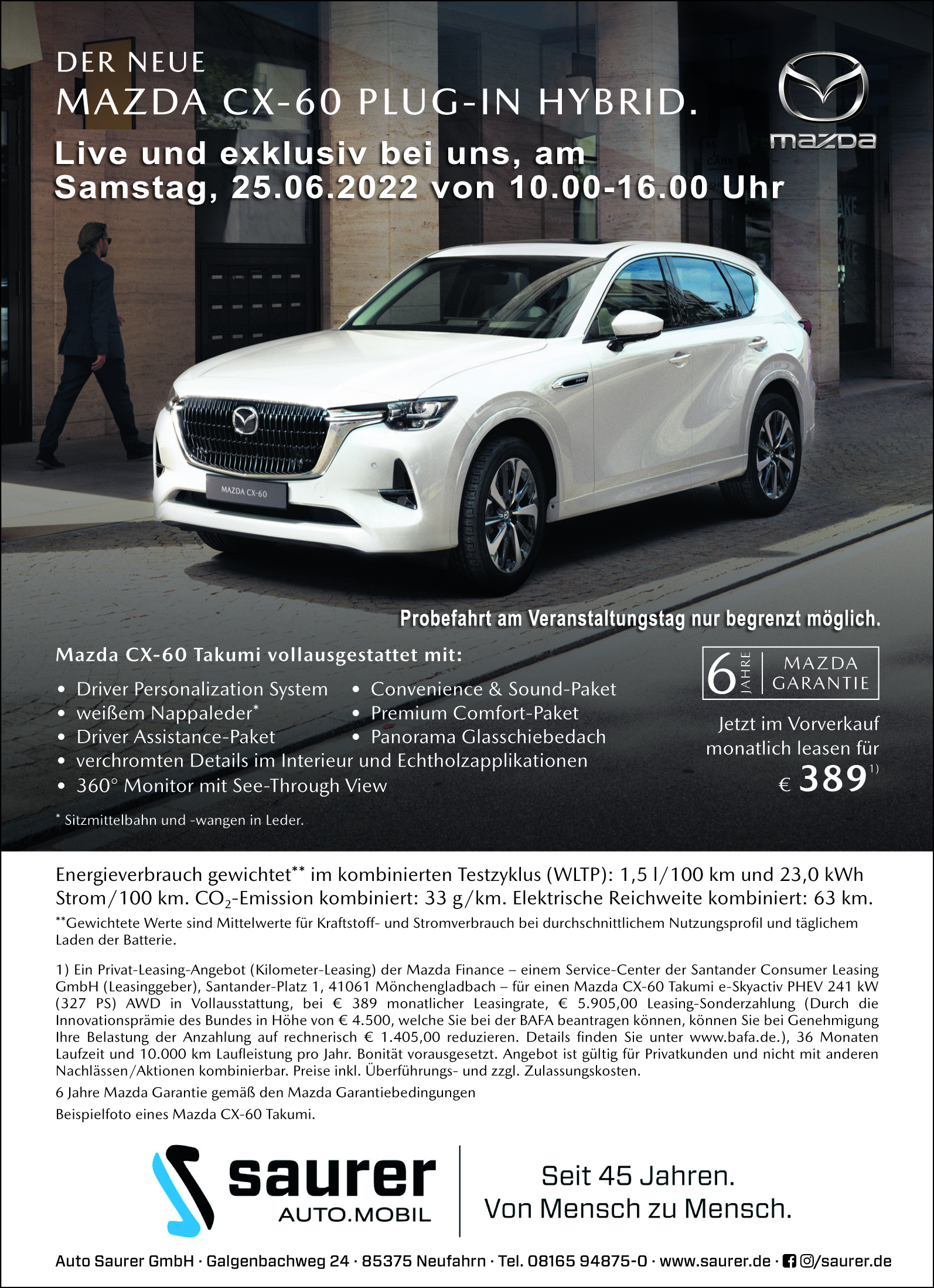Exklusive Vorpremiere des Mazda CX-60 bei Auto Saurer