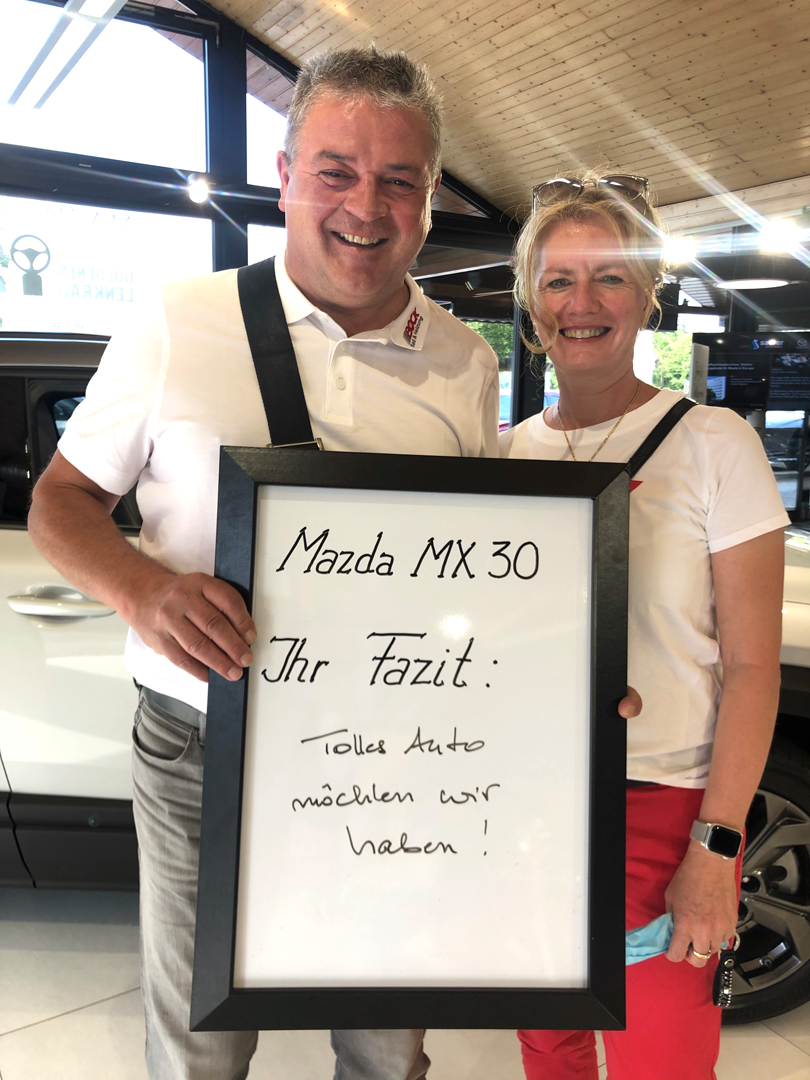 Erleben Sie den neuen MX-30 live bei uns. Lassen Sie sich bei einer Probefahrt mit den Mazda-Produktexperten elektrisieren. Nehmen Sie die aktuellen Preisvorteile gleich mit, denn Sie erhalten bei Bestellung Ihren MX-30 noch dieses Jahr!