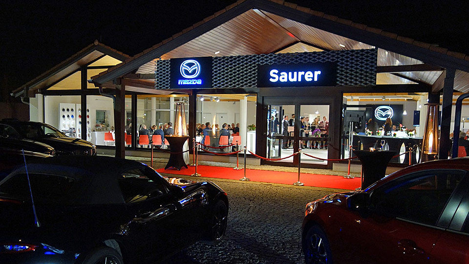 Ein großartiges Ambiente, das den Gästen bei ihrer Ankunft in Neufahrn bei Mazda-Saurer entgegen strahlte.