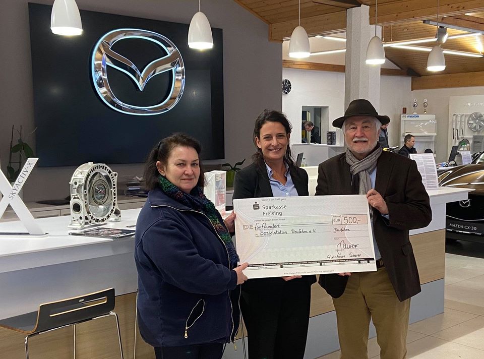Wir sehen, was die Mitarbeiter der Sozialstation Neufahrn jeden Tag mit viel Herzlichkeit und Fingerspitzengefühl unternehmen: für Ihre Mitmenschen da sein, unterstützen und zuhören. Menschen zu zeigen, Mensch sein zu dürfen, ohne wenn und aber. Wir hoffen, im Sinne unserer Kunden gehandelt zu haben, diesen Weihnachts-Scheck anstelle Kundengeschenke zu übergeben und die Einlagerung der Räder aller Fahrzeuge der Sozialstation wieder kostenfrei für beide Saisonen übernommen zu haben.